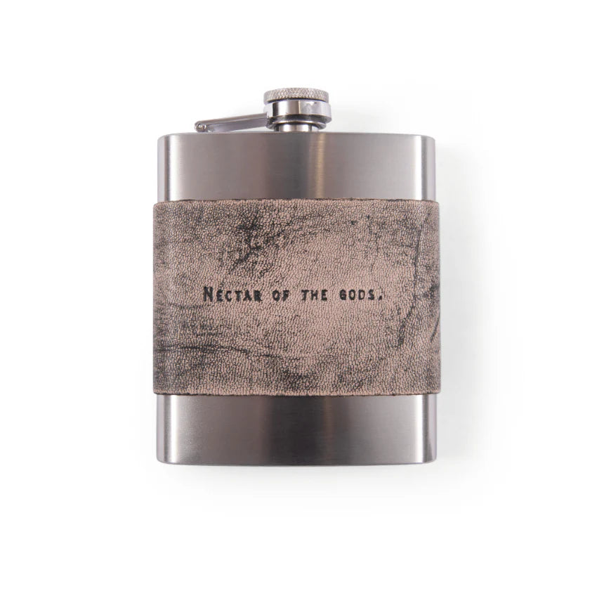 These leather flasks make for the perfect gift. Each flask is made of stainless steel with a leather wrap embossed with a quote. Due to the distressing of the design, verbiage may be difficult to read in some cases and is not considered flawed.