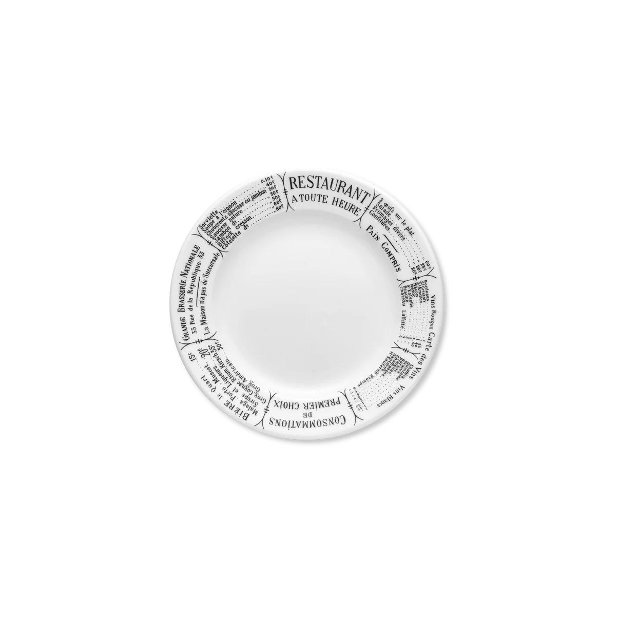 Collection Brasserie transports you to the cafes of Paris where time seems to stand still as you watch the world go by. Made from the finest French porcelain and decorated with vintage French menus, Pillivuyt's Brasserie Plates are the perfect addition to your dishware collection.